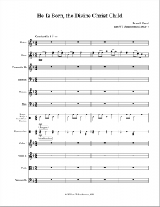 He is Born, the Divine Christ Child is a traditional French Carol, arranged here for SATB Choir and small orchestra with congregation joining for the final verse.
